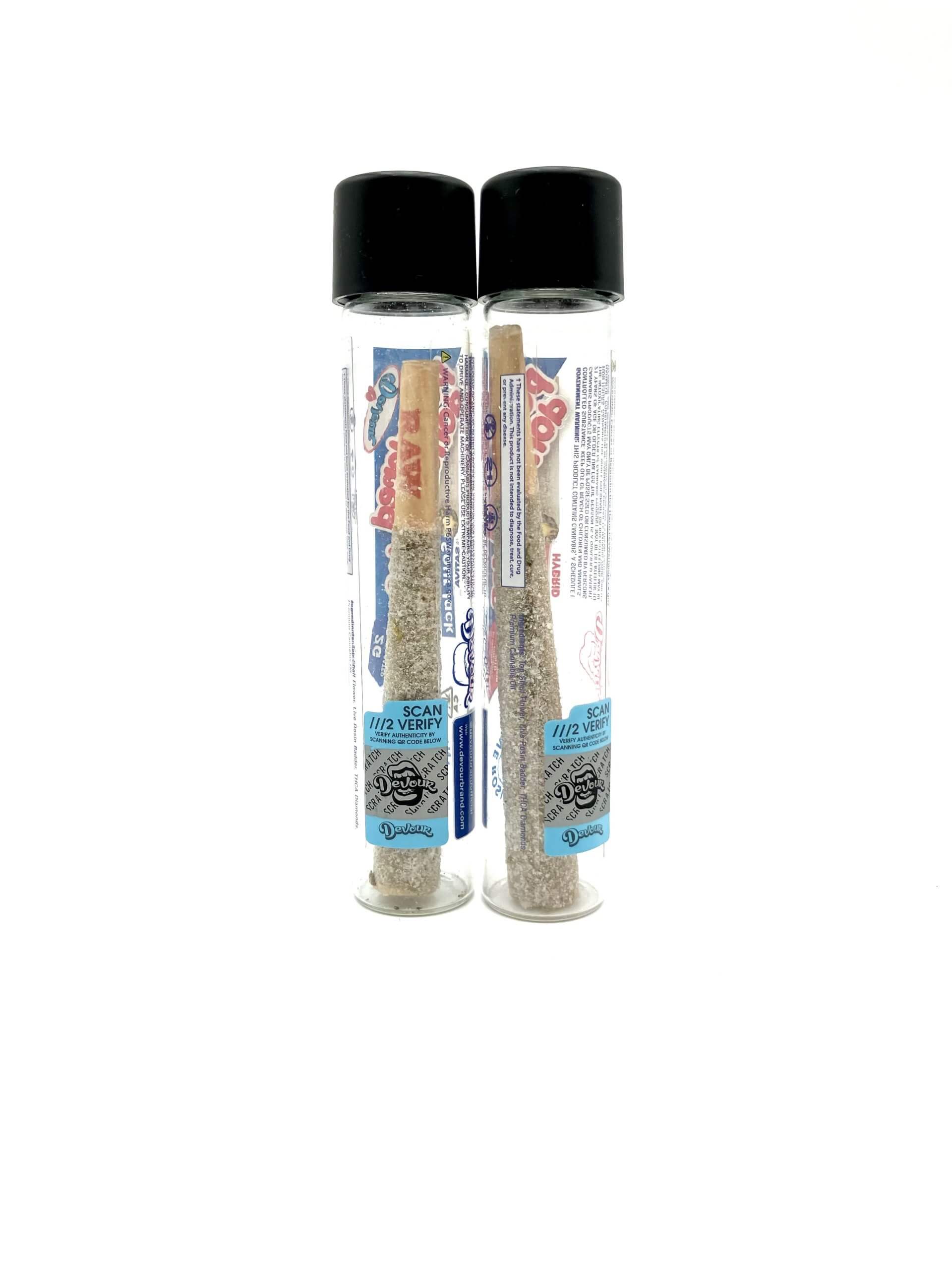 Devour presents the Powdered Donut Holes 2g Diamond-Coated Pre-Roll, featuring a live rosin center designed for a distinctive smoking profile.